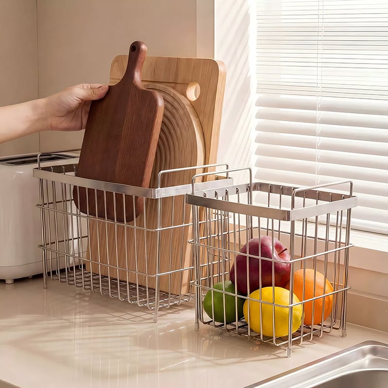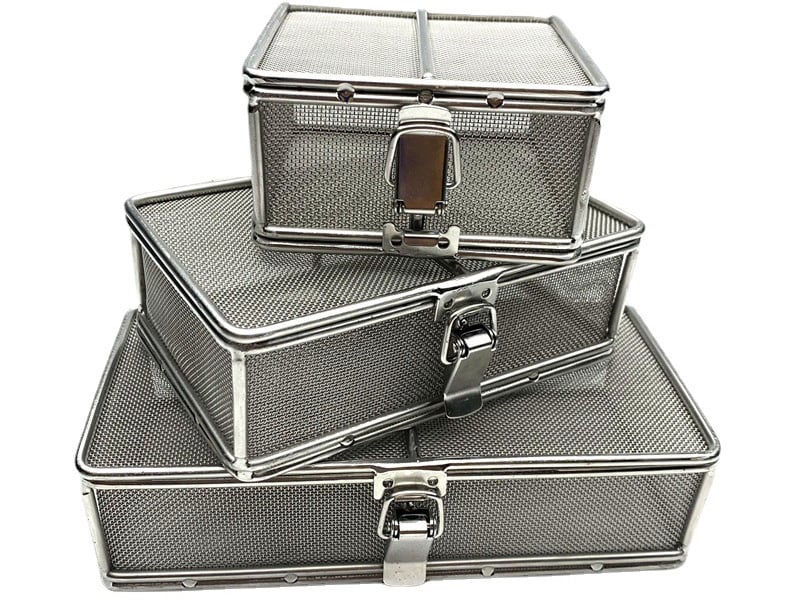 Made from stainless steel woven mesh, perforated metal sheets, or welded wire mesh.