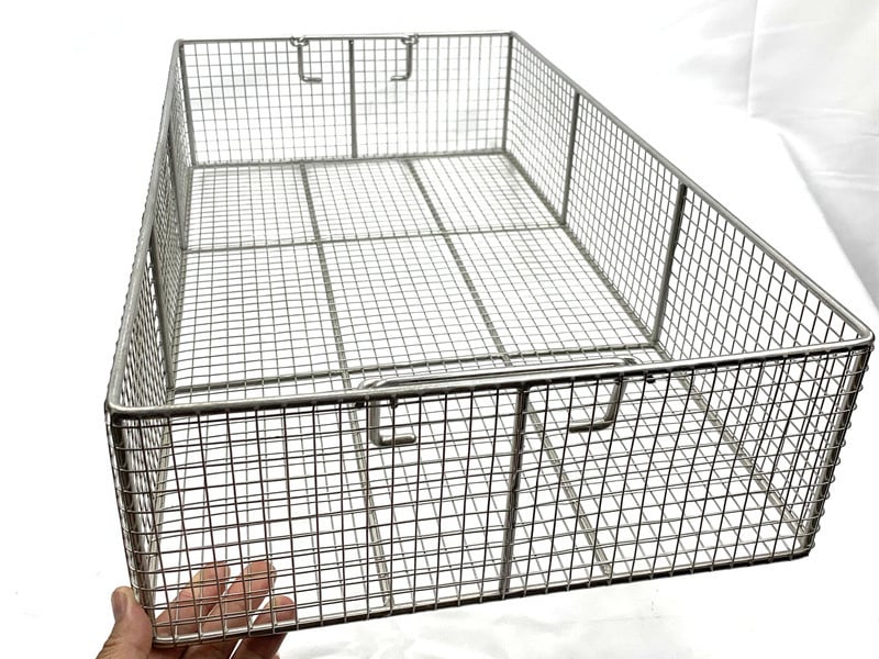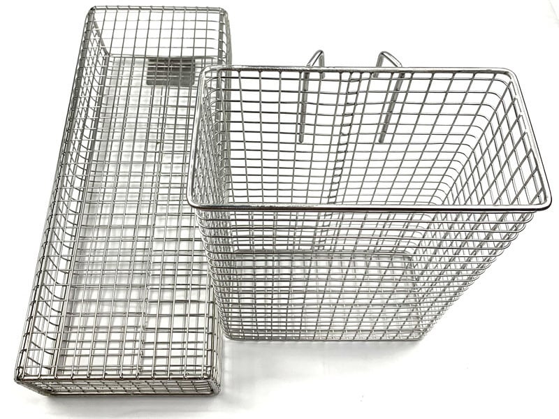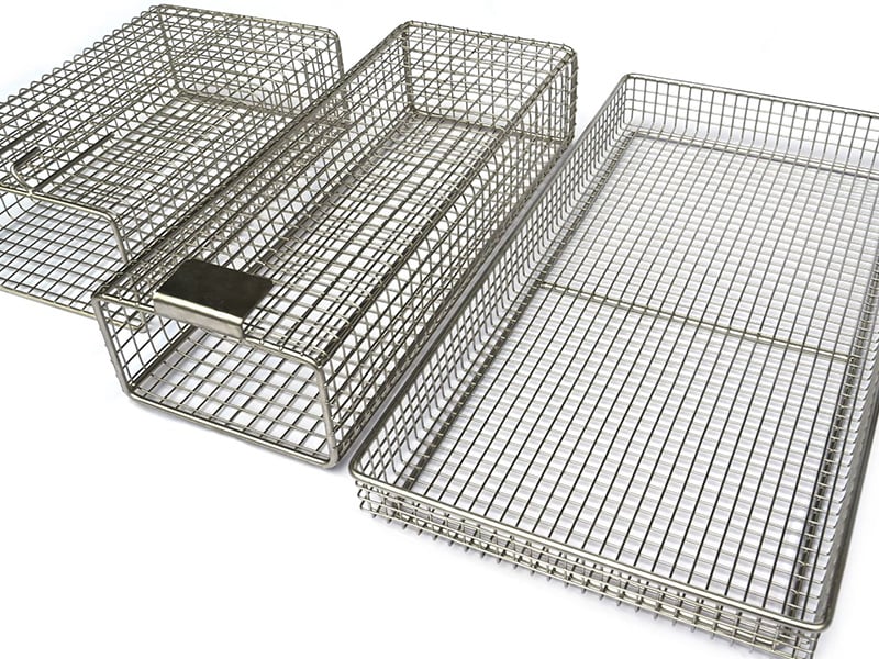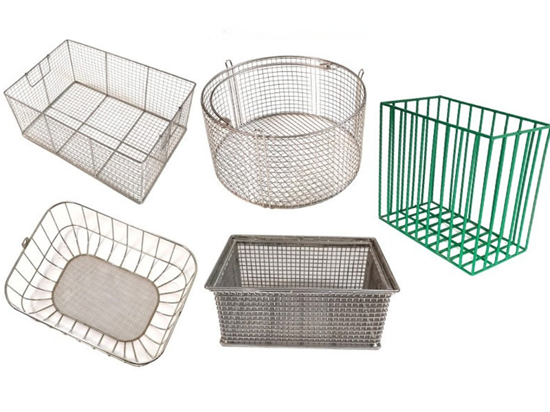 Common fabricated components include mesh baskets, bent mesh panels, machine protection guards, welded mesh structures, and other custom metal mesh parts.