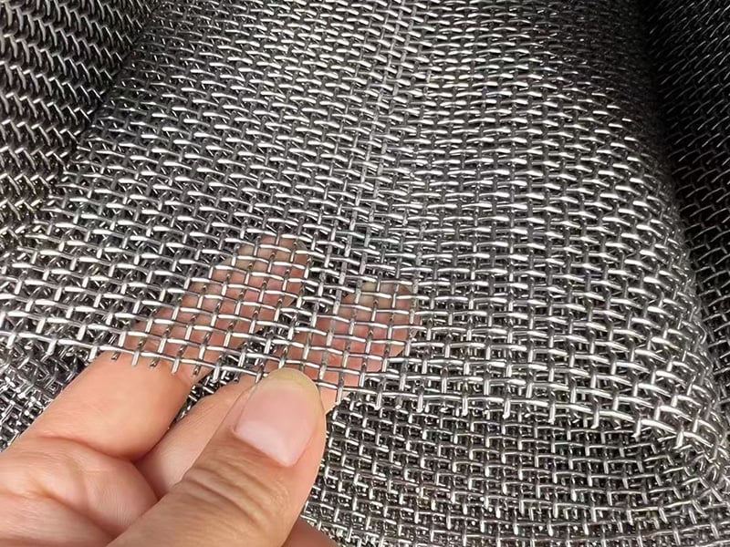 Предварительно гофрированные проволоки сплетаются между собой, обеспечивая равномерные ячейки и стабильную структуру.